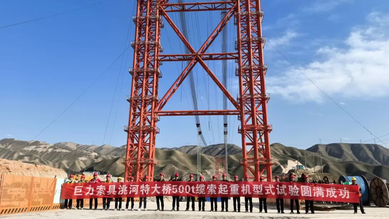 蘭永臨高速公路關鍵控制性工程洮河大橋500噸大型纜索吊裝系統(tǒng)試吊完成,標志著我國西北地區(qū)在建最大上承式鋼管混凝土拱橋建設取得關鍵突破,巨力索具吊裝系統(tǒng)成功為大橋主體施工按下“加速鍵”,大橋正式邁入主體結構施工階段。