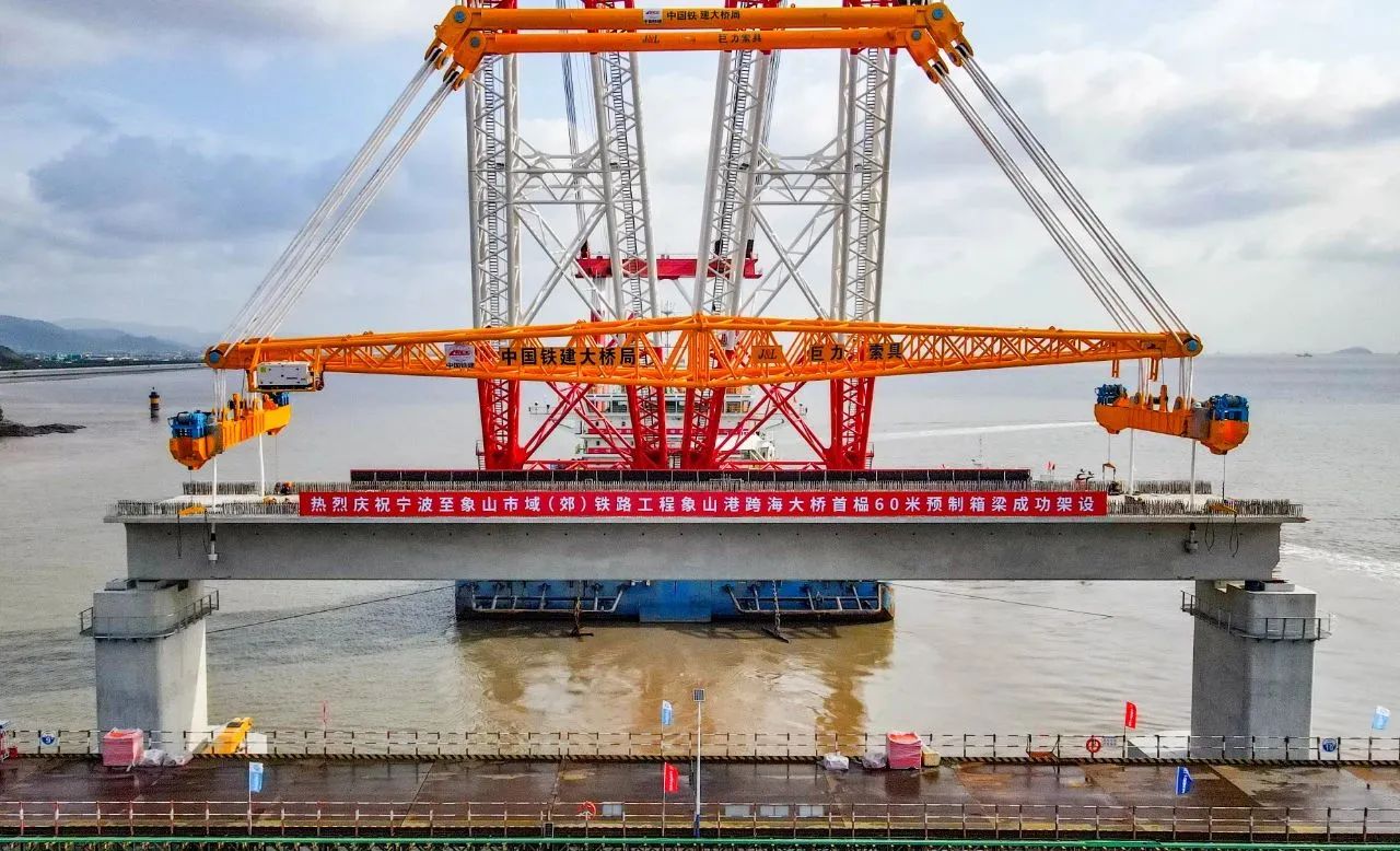 11月5日,隨著現(xiàn)場(chǎng)指揮一聲令下,國(guó)內(nèi)首座市域(郊)鐵路跨海大橋,重1700噸的預(yù)制箱梁穩(wěn)穩(wěn)落至橋墩上,巨力索具箱梁吊具全程保障首榀箱梁成功架設(shè),標(biāo)志著大橋全面進(jìn)入上部結(jié)構(gòu)施工階段。