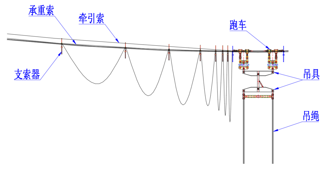 纜索吊裝系統(tǒng)主要由塔架支撐系統(tǒng)、錨固系統(tǒng)、繩索系統(tǒng)、天車和支索器系統(tǒng)、防雷系統(tǒng)等組成,并搭載了數(shù)字化工程管控平臺(tái),通過(guò)自動(dòng)監(jiān)測(cè)設(shè)備、監(jiān)控設(shè)備、外鏈系統(tǒng)等智慧工地的構(gòu)建,實(shí)現(xiàn)對(duì)吊裝現(xiàn)場(chǎng)檢查全方位時(shí)時(shí)監(jiān)控,極大地提升了施工項(xiàng)目安全生產(chǎn)的總體管控能力。