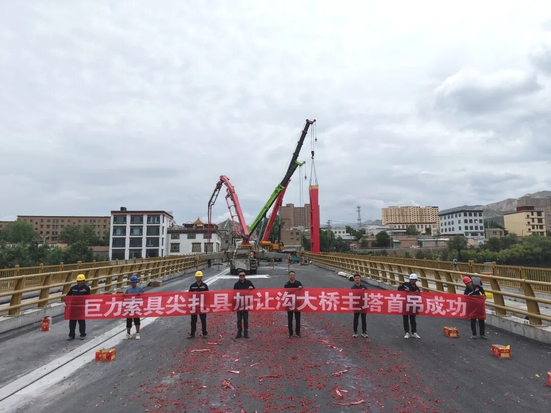 【巨力工程】尖扎縣加讓溝大橋主塔首吊成功