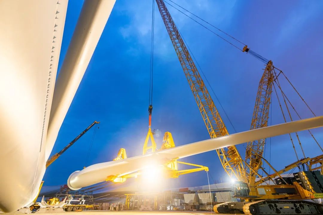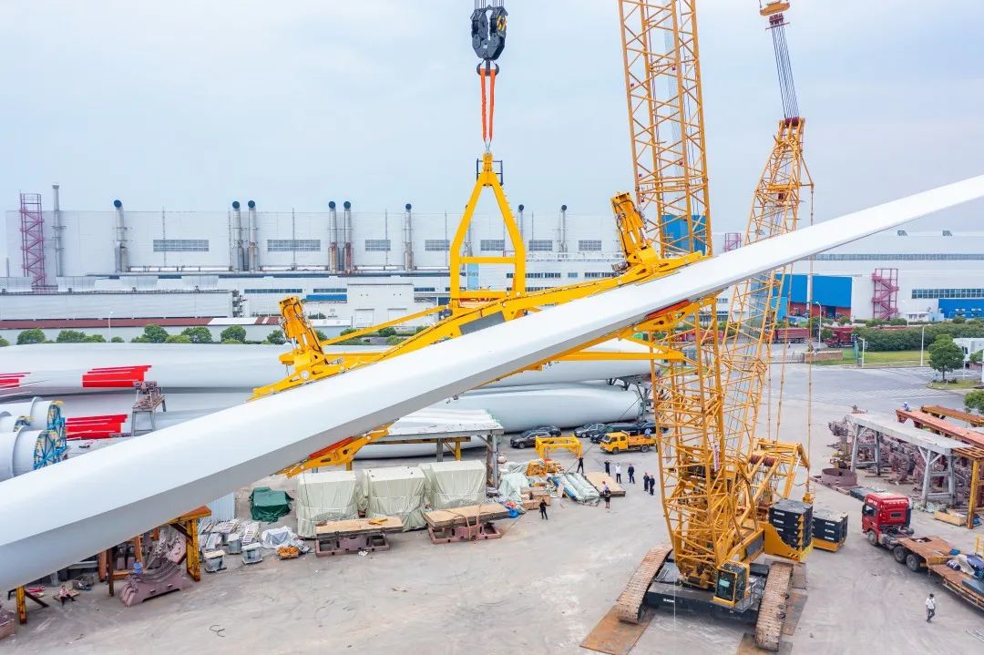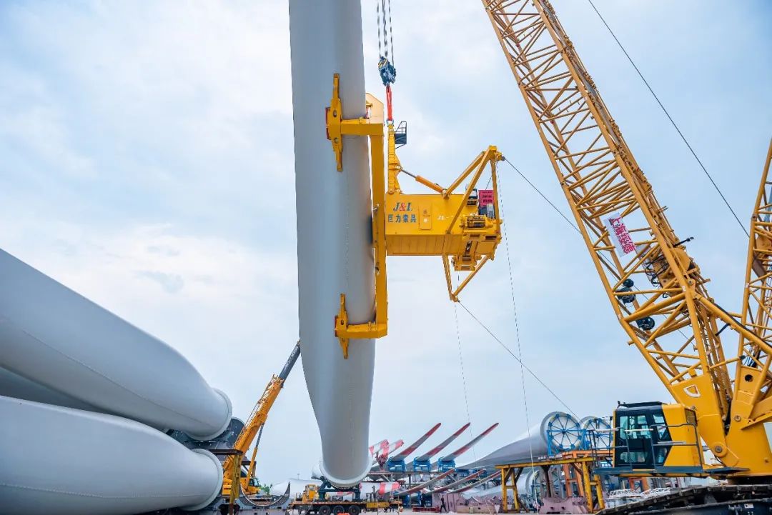 大兆瓦全角度海上單葉片吊具可滿足單只葉片最大承重50噸。同時(shí),將原有的吊裝窗口平均風(fēng)速提升至15m/s,最大陣風(fēng)風(fēng)速可達(dá)18m/s,極大拓寬了風(fēng)機(jī)吊裝窗口期,突破了海上吊裝作業(yè)風(fēng)速邊界限制,是又一款海上風(fēng)電單葉片吊裝“利器”。
