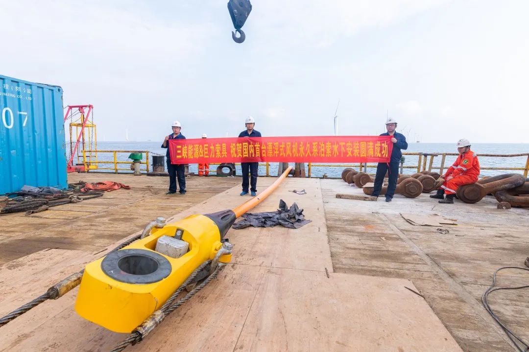6月7日,海上漂浮式風(fēng)機(jī)永久系泊索在廣東陽(yáng)江項(xiàng)目場(chǎng)完成水下鋪設(shè),為后續(xù)海上風(fēng)機(jī)浮式基礎(chǔ)平臺(tái)到達(dá)安裝打下堅(jiān)實(shí)基礎(chǔ)。