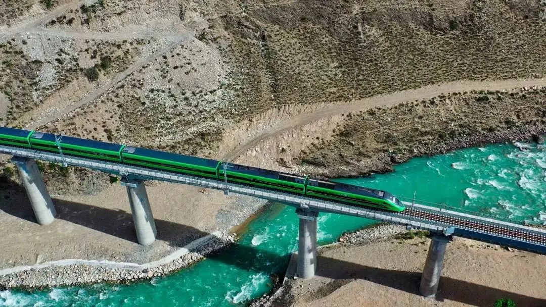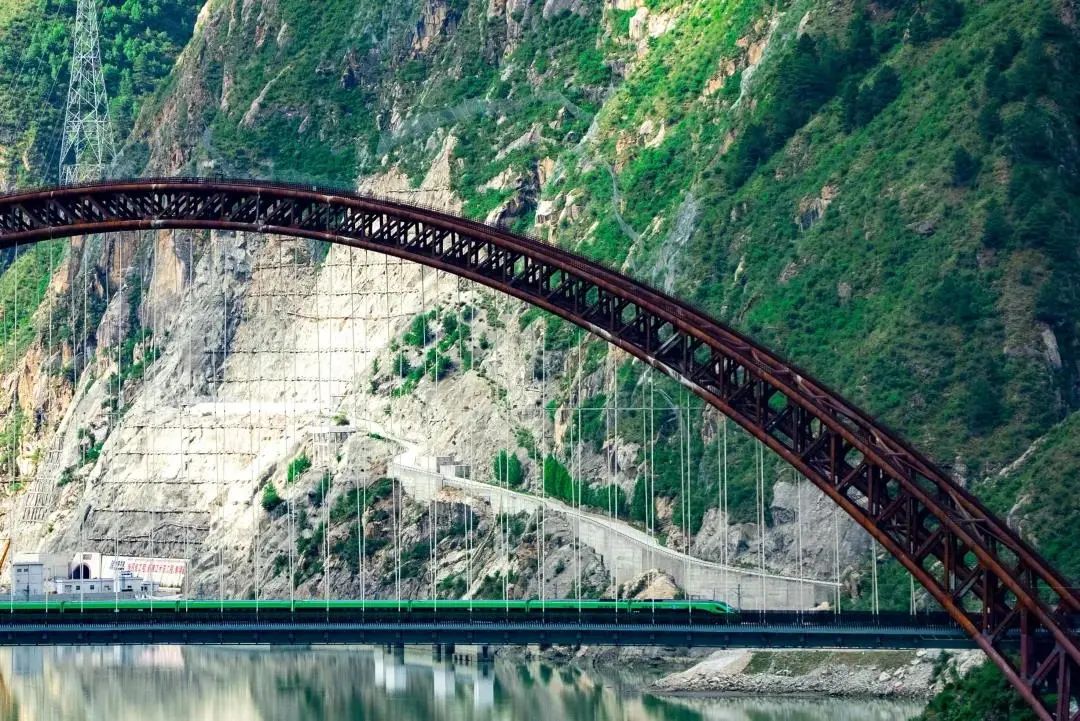 拉林鐵路正線全長435.48公里,設(shè)計(jì)時(shí)速160公里,是西藏首條電氣化鐵路。藏木雅魯藏布江雙線特大橋全長525.1米,主拱跨徑430米,橋址處海拔3350米,是目前世界上海拔最高、跨度最大的鐵路鋼管混凝土拱橋,也是雅魯藏布江上首座“一跨過江”的鐵路橋梁。