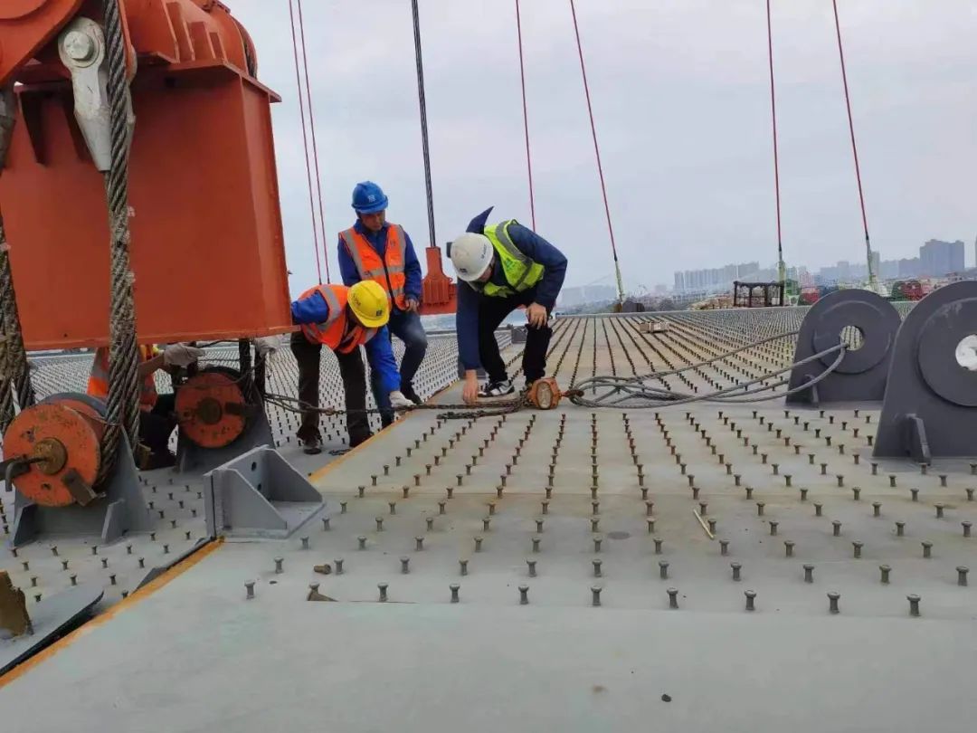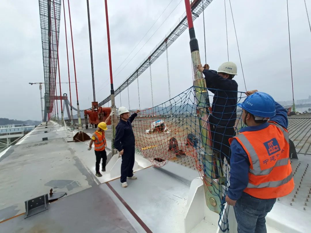節(jié)后開工第一天,廣西橫州特大橋項(xiàng)目現(xiàn)場(chǎng)一派熱火朝天。巨力索具主要負(fù)責(zé)該項(xiàng)目纜索與鋼箱梁施工安裝,為確保施工進(jìn)度,浦江纜索公司員工堅(jiān)守崗位,嚴(yán)守職責(zé),克服環(huán)境等困難,穩(wěn)步推進(jìn)各項(xiàng)作業(yè)進(jìn)度,以高質(zhì)量工程建設(shè)助力公司高質(zhì)量發(fā)展。