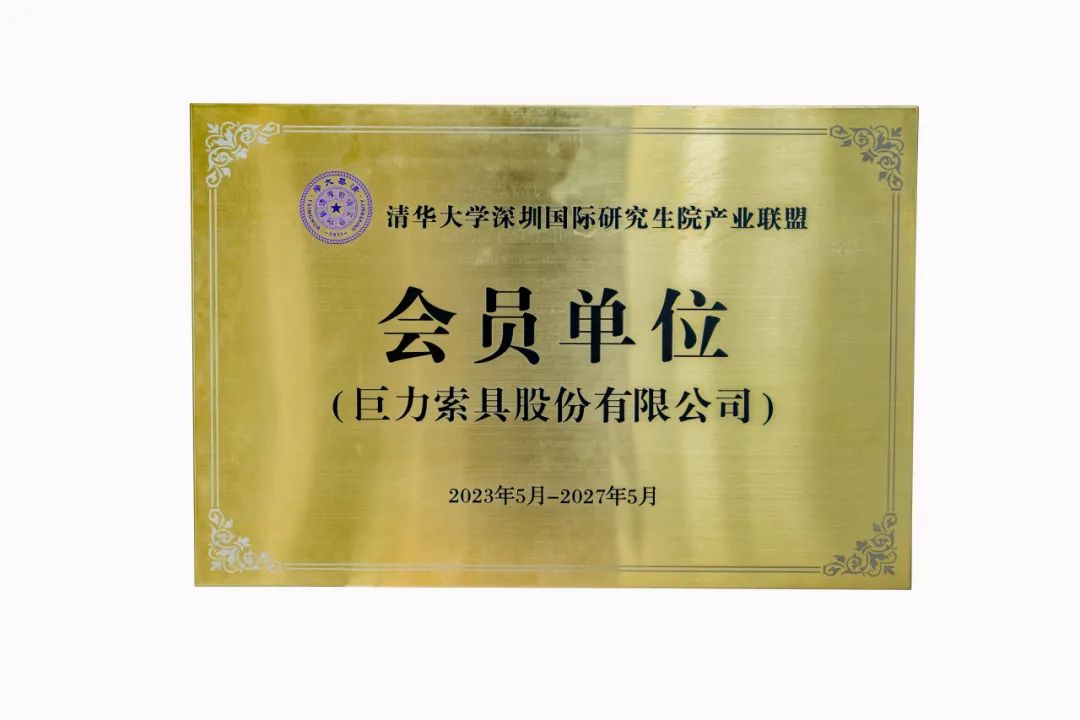 2023年7月31日,巨力索具正式納入清華大學(xué)深圳國際研究生院產(chǎn)業(yè)聯(lián)盟會員單位,雙方在巨力索具總部科技中心舉行了授牌儀式。