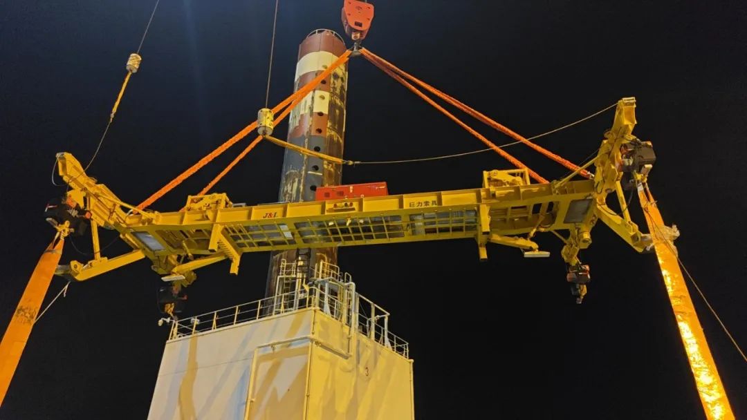 巨力索具為本次全程吊裝保駕護航,提供的50噸折疊式海上單葉片吊具實現單個風電葉片在空中與輪轂的對接安裝。