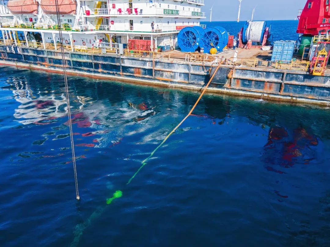 2021年6月7日,海上漂浮式風(fēng)機(jī)永久系泊索在廣東陽江項(xiàng)目場(chǎng)完成水下鋪設(shè),為后續(xù)海上風(fēng)機(jī)浮式基礎(chǔ)平臺(tái)到達(dá)安裝打下堅(jiān)實(shí)基礎(chǔ)。